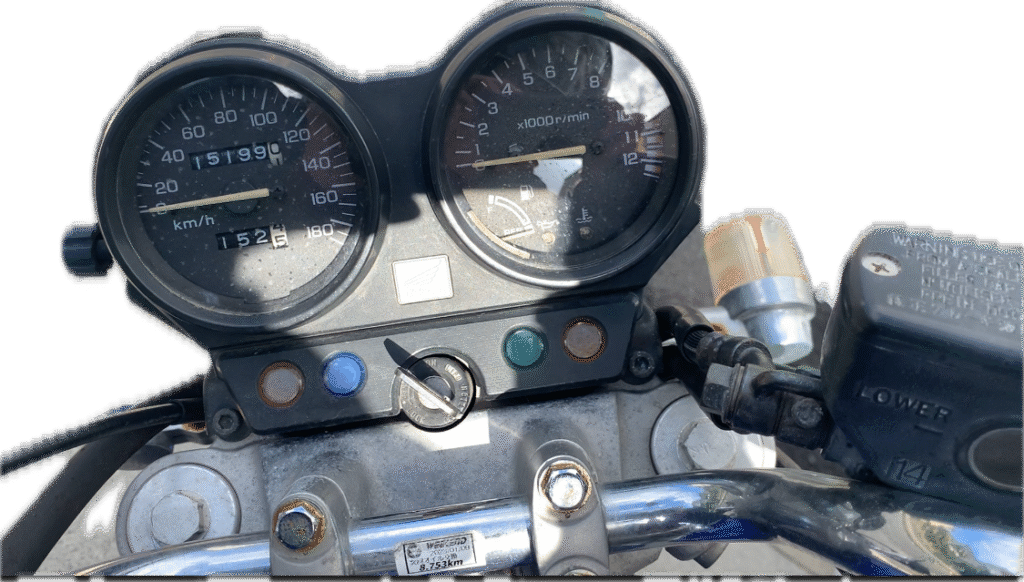 走行距離は115,199キロ…メーター1周達成!走るとバイクの悲鳴が聞こえる(バイク屋さん曰く修理費10万円突破は確実)